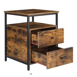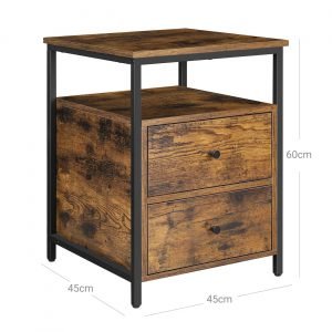 Transforma cualquier rincón de tu habitación añadiendo un toque de estilo industrial con nuestra mesita de noche. La combinación perfecta de marrón rústico y negro no solo embellece tu espacio personal, sino que también añade un aire sofisticado y moderno, iluminando tanto tus días como tus noches.
