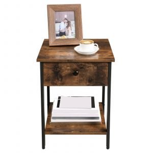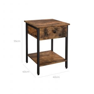 Mesita de noche con cajón y estante, diseño industrial