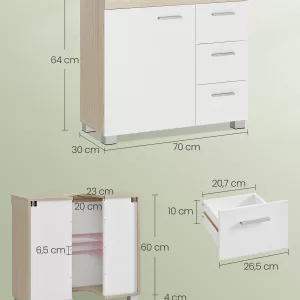 Armario de baño alto blanco con 3 estantes, 1 cajón y 1 armario