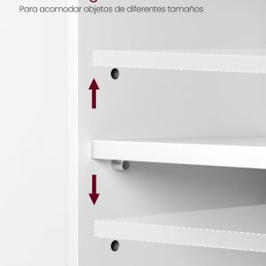 El estante interior de este mueble es ajustable en tres diferentes alturas, lo que te permite guardar desde pequeños botes de champú hasta voluminosos geles de ducha. Ajusta el espacio según tus necesidades y olvídate de las limitaciones de almacenamiento.