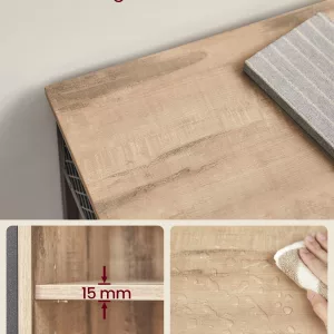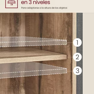 La resistencia no se sacrifica por el estilo. Con un robusto marco de acero y tablero de aglomerado de calidad, este armario sostendrá firmemente objetos como jarrones de cerámica, libros gruesos o ropa de cama.