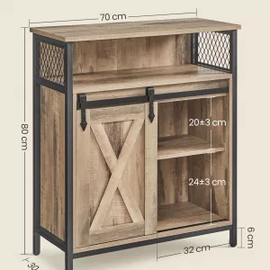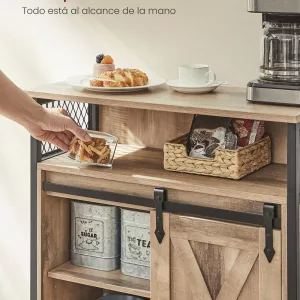 El almacenamiento no tiene por qué ser aburrido, y este armario industrial lo demuestra con su encanto único. La combinación de una puerta de granero, paneles rústicos y metal negro crea un mueble de almacenamiento magnífico y estilizado.
