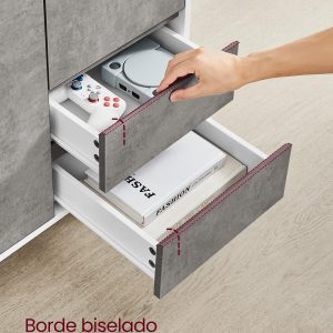 Detalles Prácticos y Elegantes: Las puertas y cajones con bordes biselados son fáciles de abrir, y las bisagras ajustables aseguran una alineación perfecta.