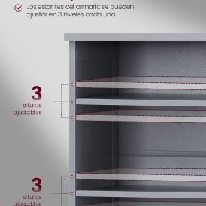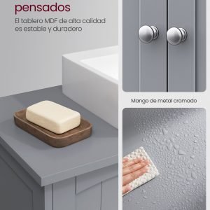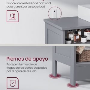 Mueble lavabo extra largo, 2 puertas, estantes, baño, gris paloma