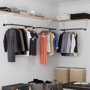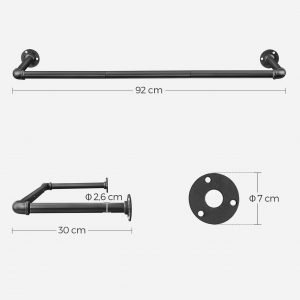 Espacio Generoso para Perchas: Con una distancia de 30 cm entre la pared y la barra de colgar, este soporte proporciona suficiente espacio para la mayoría de las perchas y tipos de ropa, evitando que las prendas se rocen contra la pared.