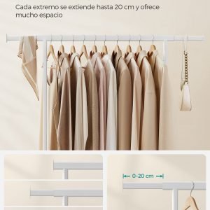 Barras Retráctiles Versátiles: Cuenta con barras laterales extensibles hasta 20 cm (longitud total de 92-132 cm), proporcionando espacio adicional para colgar ropa y organizar accesorios como bolsos, sombreros y bufandas.
