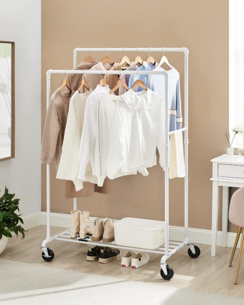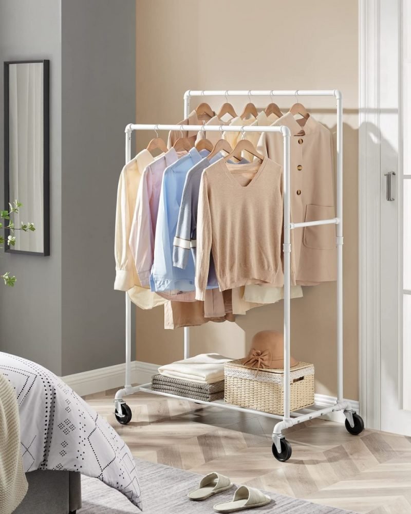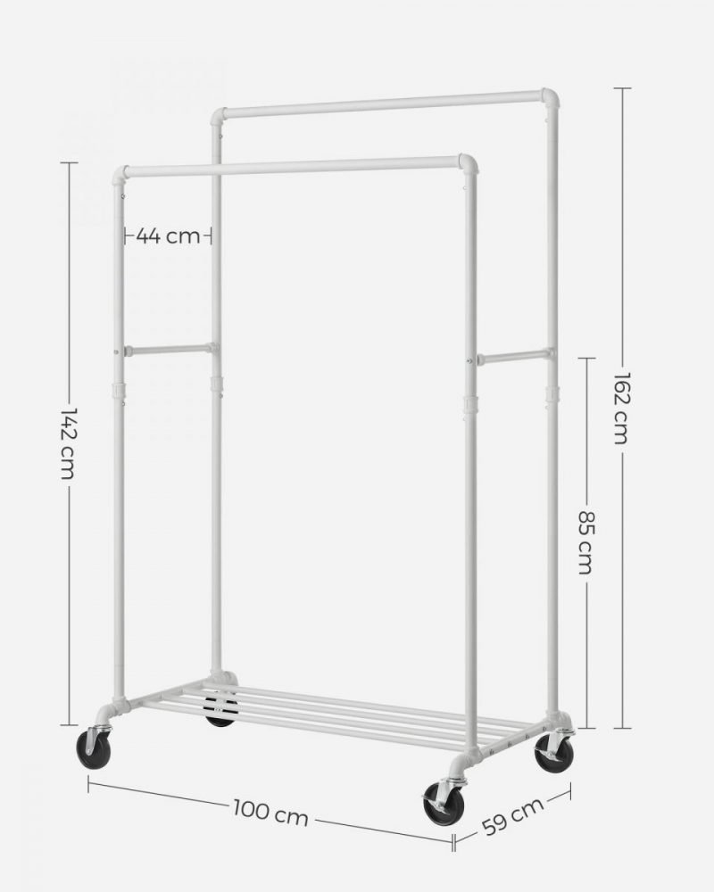 Diseño Inteligente: Con dos barras de 100 cm de largo y 44 cm de distancia entre ellas, tendrás fácil acceso a tu ropa. Además, las barras transversales laterales son ideales para colgar bolsos, sombreros y bufandas.