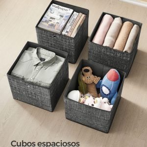 Durabilidad y Estabilidad: Fabricados con tela no tejida de alta densidad (80 g/m²) y cartón de 1,9 mm de espesor, cada cubo está diseñado para soportar hasta 5 kg, garantizando una solución de almacenamiento robusta y fiable.
