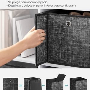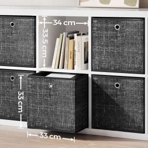 Diseño Elegante: La impresión de tela con textura y su color negro jaspeado otorgan a estos cubos un aspecto distintivo y sofisticado, capaz de integrarse armoniosamente en cualquier decoración.