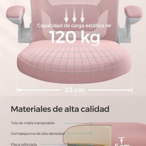 Soporte Lumbar Ajustable: Con un respaldo en forma de S y soporte lumbar acolchado ajustable, esta silla abraza tu espalda de manera cómoda, proporcionando un soporte esencial que reduce la fatiga y el estrés en tu espalda durante largos períodos de sentado.