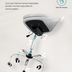 Fácil de Montar: Montaje sencillo en pocos pasos. Fija la placa base a la parte inferior del asiento con tornillos, instala las bombonas de gas y las ruedas, y tu silla estará lista para usar.