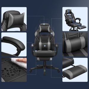 Equipada con reposacabezas y soporte lumbar, esta silla promueve una postura saludable mientras trabajas. Además, con un reposapiés retráctil y un respaldo inclinable, puedes tomar breves momentos para recostarte, estirar y relajar tu cuerpo, asegurando que tu mente permanezca enfocada y libre de distracciones. Las ruedas de nailon garantizan un desplazamiento suave y silencioso, manteniendo tu concentración en lo que realmente importa.