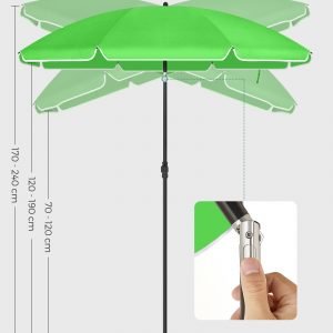 Material: Mástil de Acero, Varillas de Fibra de Vidrio, Cubierta de Poliéster de 160 g/m²
