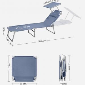 Relájate y disfruta del sol con esta tumbona plegable y portátil, ideal para el patio, la piscina o el jardín. Con un diseño funcional que incluye un respaldo ajustable, tela transpirable y sombrilla regulable, esta tumbona es la elección perfecta para descansar cómodamente en el exterior.