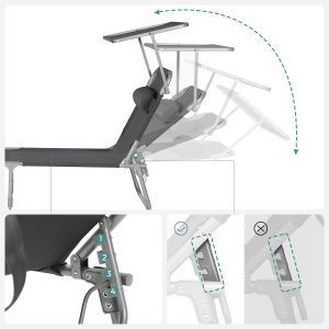 Equipada con una sombrilla ajustable, nuestra tumbona te permite disfrutar del sol sin las molestias de tenerlo directamente en los ojos. Ajusta fácilmente la sombrilla para protegerte mientras consigues ese bronceado envidiable que todos desearán.