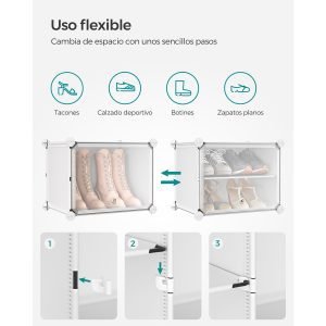 Diseñado para adaptarse a cualquier espacio, este mueble no solo almacena hasta 40 pares de zapatos sino que también ofrece soluciones versátiles para organizar bolsos, ropa y más. Su diseño robusto y seguro, junto con la facilidad de montaje y la flexibilidad de configuración, lo convierten en la solución perfecta para mantener tu hogar ordenado y elegante.