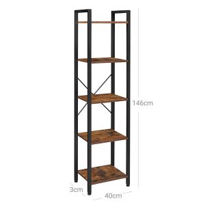Este mueble no solo es una estantería; es una declaración de estilo que aporta el encanto de la historia industrial a cualquier espacio. Con su mezcla de tablones rústicos marrones y marco de metal negro, ofrece un carácter intemporal que enriquece el ambiente de tu salón, oficina o dormitorio.