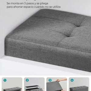 Experimenta una comodidad inigualable con el tablero de asiento de nuestro banco de almacenaje, relleno con esponja de alta densidad y cubierto con tela de lino de imitación, suave y transpirable. Diseñado para ofrecer un asiento cómodo sin deformarse con el tiempo, se convertirá en tu lugar favorito en casa.