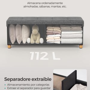 Con dimensiones de 110 x 38 x 40 cm y 112 litros de capacidad de almacenamiento, este taburete plegable es increíblemente versátil. Úsalo como reposapiés, mesa de centro en el salón, al final de la cama o junto a la ventana, y aprovecha al máximo cada rincón de tu hogar.