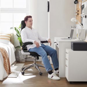 Los apoyabrazos (la altura entre los apoyabrazos y el asiento es de 22 cm) quedan muy bien con los brazos, es favorable para relajar los brazos, y los apoyabrazos plegables le facilitan colocar la silla debajo de su escritorio; gracias al mecanismo de ajuste, son regulables la altura del asiento (45-54,5 cm) y la inclinación, lo que le ayuda a relajarse (es adecuada para las personas que miden hasta 175 cm).