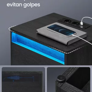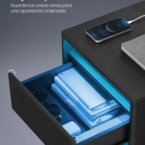 Mesilla de Noche con Tiras LED Dobles y Estación de Carga: Funcionalidad e Iluminación Personalizable