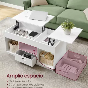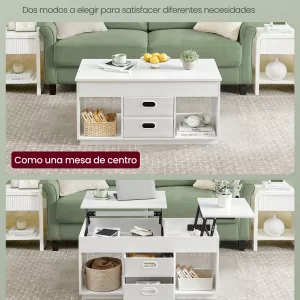 Mesa de centro con 2 cajones y estante abierto, nogal y negro