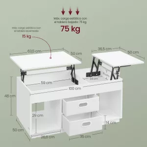 Dimensiones del producto: 50 x 100 x 48/62,3 cm (Profundo x Ancho x Alto)