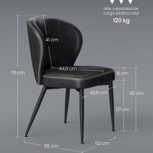 Set de 2 sillas de comedor, estilo industrial, marrón y negro