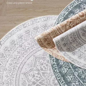 Alfombra Redonda Bohemia con Superficie Suave y Base Antideslizante