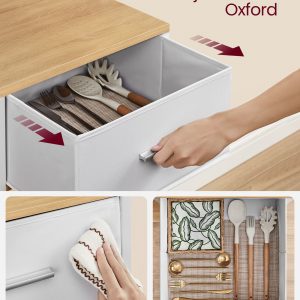 Almacenamiento y Organización Eficiente: Un cajón de tela para cubiertos, 2 barras para colgar, y 12 ganchos en S para toallas y utensilios proporcionan soluciones prácticas para mantener tu cocina organizada.
