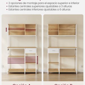 Versatilidad y Flexibilidad: Los estantes ajustables en altura y las múltiples opciones de montaje permiten personalizar el espacio de almacenamiento según tus necesidades específicas.