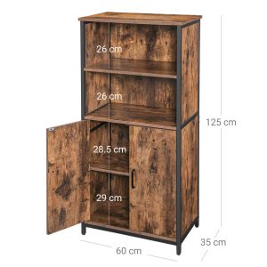Espacio Amplio para Almacenamiento: Con dimensiones generosas de 60 x 35 x 125 cm, este armario ofrece una combinación de 2 compartimentos abiertos y 2 cerrados, proporcionando el lugar perfecto para almacenar una variedad de artículos, permitiendo que cada cosa encuentre su lugar.