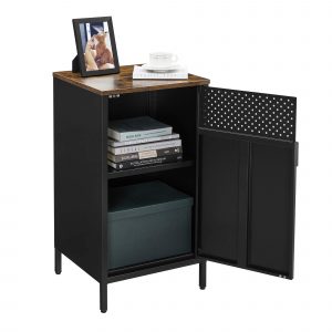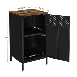 Este armario no solo es un mueble, es una pieza de declaración para tu hogar. Con su tapa marrón rústico con veta de madera y su robusto marco de acero negro, este mueble añade un toque industrial y sofisticado a cualquier espacio.