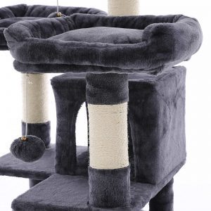 Este árbol para gatos es un completo centro de entretenimiento: 3 grandes plataformas, 2 cuevas acogedoras, 1 canasta y 3 pelotas de pelo proporcionan una variedad de actividades. Es como un campamento de vacaciones en casa, garantizando diversión y confort para tus gatos durante todo el año.