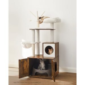 Árbol para Gatos y Recinto para Caja de Arena en Uno: Ahorra espacio mientras ofrece un lugar completo para observar, jugar y relajarse.