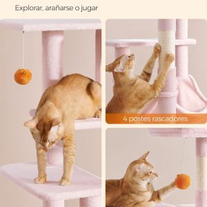 Fácil de Escalar: El diseño de varios niveles y la plataforma lateral hacen que el árbol sea fácil de escalar. Incluso los gatos ancianos o discapacitados pueden subir y observar su entorno.