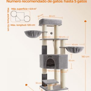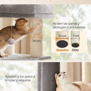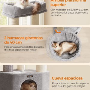 Árbol para gatos grande con almohadillas autocalentables, gris y blanco