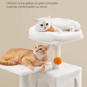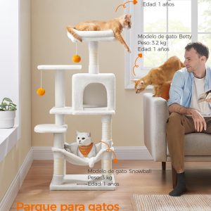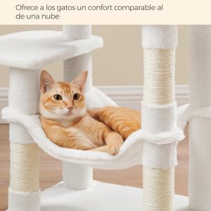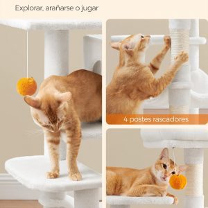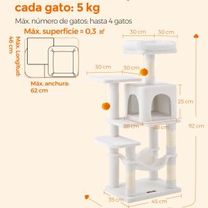 Árbol para gatos multinivel de 112 cm, postes rascadores, blanco crema