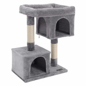 Árbol rascador para gatos con columnas de sisal, 2 viviendas, gris claro