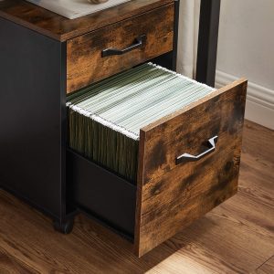 Diseño Eficiente: Con un cajón superior para objetos pequeños como notas adhesivas y un cajón inferior más grande equipado con rieles colgantes para archivos tamaño A4 o carta, este archivador te ayuda a mantener tus documentos importantes organizados y seguros.
