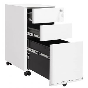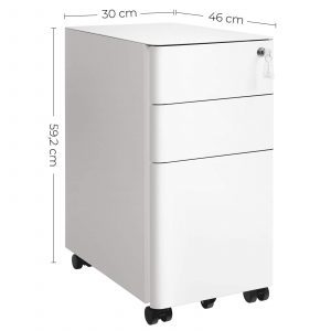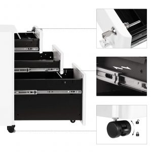 Construcción Duradera: Fabricado con una estructura de acero robusta, este archivador es resistente y duradero. Los dos cajones superiores tienen una capacidad de carga de hasta 15 kg cada uno, mientras que el cajón inferior soporta hasta 20 kg.