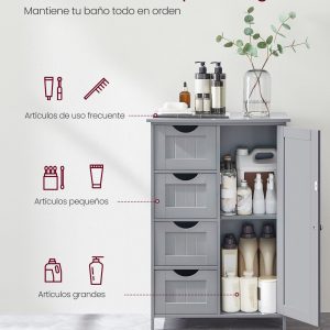 Este armario de baño combina funcionalidad y estilo para maximizar el espacio de almacenamiento en áreas compactas. Ofrece una solución ordenada y eficiente para mantener organizados los artículos de uso frecuente, objetos pequeños, y otros de diferentes tamaños. Su diseño compacto lo hace ideal para espacios limitados, sin sacrificar su capacidad de almacenamiento.
