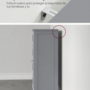 Construcción Robusta: Fabricado con paneles de MDF de alta calidad, garantiza estabilidad y durabilidad. Además, incluye una protección antivuelco para asegurar el mueble contra inclinaciones o caídas.