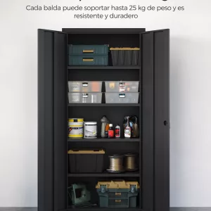 Alta capacidad de carga: Este armario alto de 40 x 80 x 180 cm está fabricado con acero de alta resistencia, permitiendo que cada balda soporte hasta 25 kg, asegurando resistencia y durabilidad a largo plazo.
