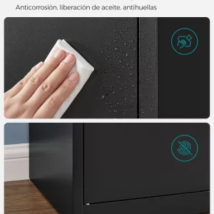 Este armario metálico está diseñado para ofrecer una solución eficiente y elegante tanto en el hogar como en el entorno de trabajo. Su acabado en recubrimiento de polvo lo hace duradero y fácil de mantener, mientras que sus colores blanco grisáceo, gris y negro se integran armoniosamente en cualquier decoración. Ideal para organizar documentos, herramientas, libros y otros objetos, manteniendo el orden y optimizando el espacio disponible.