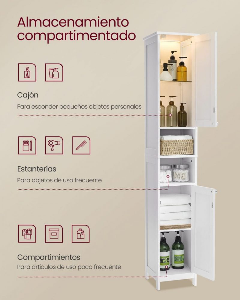 Este armario es ideal para cualquier persona que busque mejorar la funcionalidad y la estética de su baño, especialmente en hogares con espacios limitados. Su diseño moderno, iluminación integrada y flexibilidad de montaje lo convierten en una adición práctica y elegante a tu hogar.