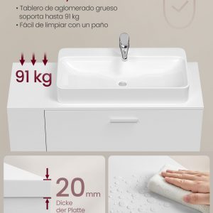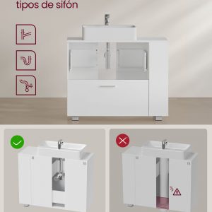 Armario de baño bajo lavabo con 2 cajones, diseño elegante