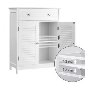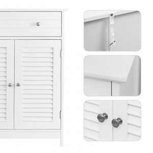 Introduce un soplo de aire fresco en tu baño con este mueble de color blanco puro y puertas con persianas, evocando la atmósfera relajante del mar. Este armario no solo optimiza tu espacio de almacenamiento sino que también convierte tu baño en un encantador destino de relajación.
