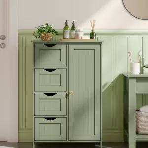 Organización Eficiente: Equipado con una mesa para artículos de uso diario, 4 cajones para objetos pequeños, y un estante ajustable de 3 niveles detrás de la puerta, este mueble permite una organización versátil y eficaz de tus pertenencias.