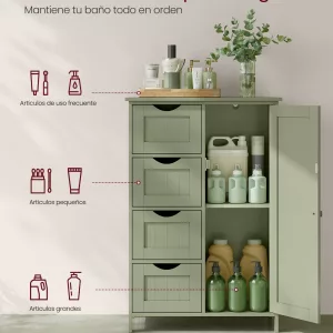 Este armario de baño combina funcionalidad y estilo para maximizar el espacio de almacenamiento en áreas compactas. Ofrece una solución ordenada y eficiente para mantener organizados los artículos de uso frecuente, objetos pequeños, y otros de diferentes tamaños. Su diseño compacto lo hace ideal para espacios limitados, sin sacrificar su capacidad de almacenamiento.